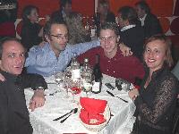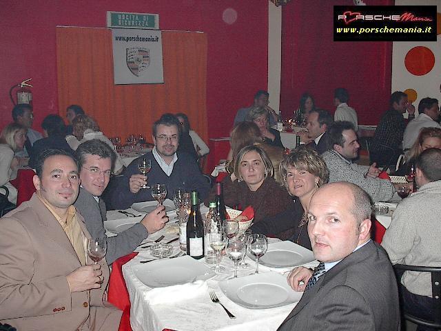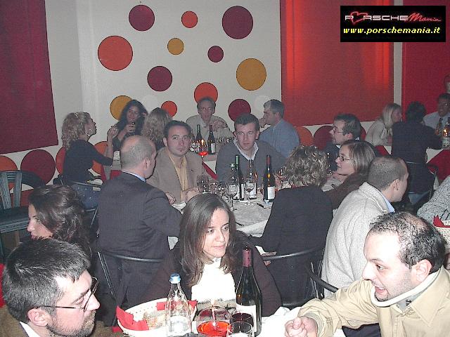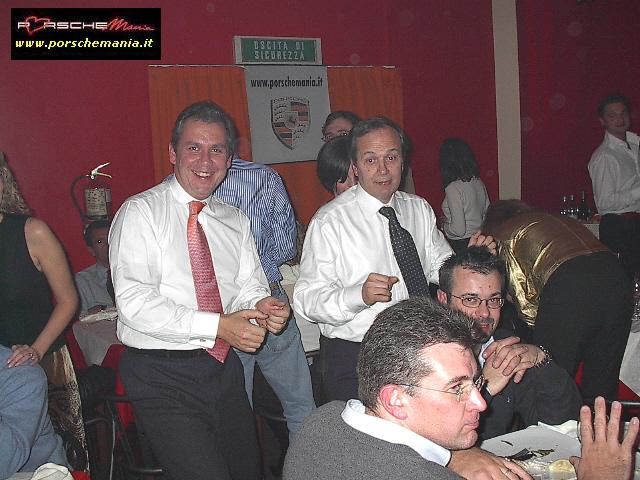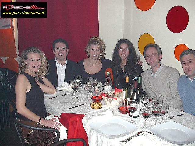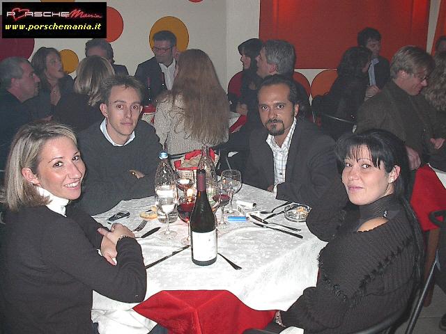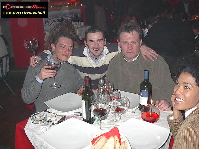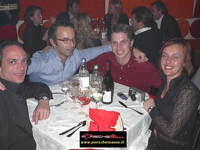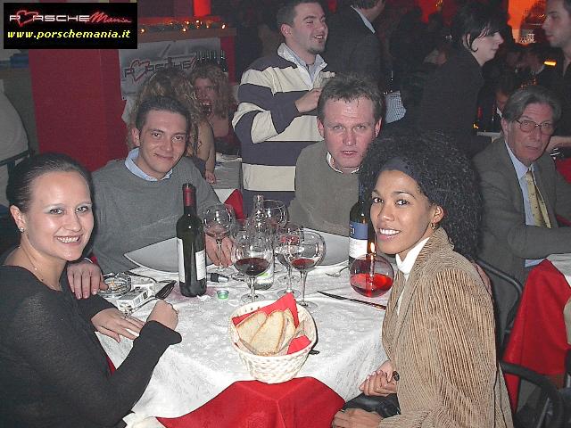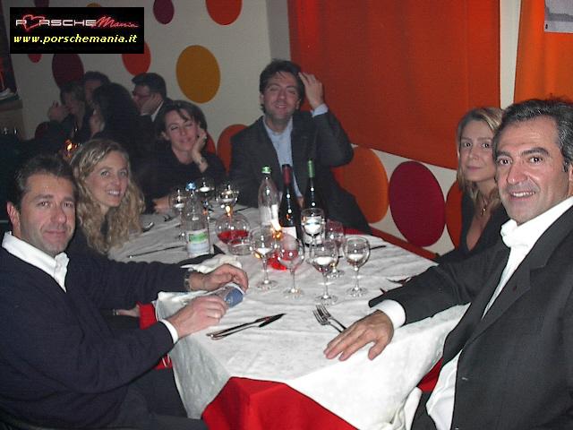 Ha fatto registrare il tutto esaurito il party natalizio di PorscheMania, organizzato per l'occasione presso il locale Ottavo Nano di Gallarate, grazie anche all'interessamento personale di PierLuigi A. (pierre) che ha saputo scegliere e proporre un locale rivelatosi perfetto per le nostre esigenze. Fin dall'arrivo si poteva apprezzare il buon lavoro fatto da Luca (gestore del locale) nell'organizzare la serata: due persone dedicate esclusivamente alla sorveglianza del parco auto che hanno fatto rispettare rigorosamente le direttive concordate: solo Porsche !! La prima parte della serata trascorreva cosė piacevolmente tra cocktail, buon cibo, bella gente e musica soffusa, condizioni ideali per conoscere nuovi amici o per scambiare quattro chiacchere con il 'gruppone' degli abituč, sempre in prima fila quando si tratta di mangiare (bene) e far baldoria. Una menzione speciale va fatta per i PorscheManiaci arrivati da lontano: la delegazione della Toscana, con in testa 'doc' Paolo G. e GianLuca V., i liguri Andrea C. e Mauro Fast911, Sergio e Bruno da Bologna e, last but not least, l'oramai omnipresente Davide da Padova. Finalmente ad un evento di PorscheMania si č vista una folta partecipazione di signore ed i pochi Pimaniaci single presenti non hanno certo smentito la loro fama di 'tombeur' aggregando alla compagnia alcune simpatiche ragazze conosciute in loco: su tutti si č distinto il piccolo/grande Bart che č riuscito a coinvolgere nelle danze pių di una fanciulla. Fra un piatto di penne ed il branzino al sale si arrivava cosė verso mezzanotte, quando il locale, trasformatosi in discoteca, si animava improvvisamente, la musica si faceva via via pių presente e la serata cambiava tono accompagnando gli ospiti fino alle ore piccole. Doveroso per concludere un ringraziamento a tutti i Pimaniaci intervenuti, ma soprattutto ancora |