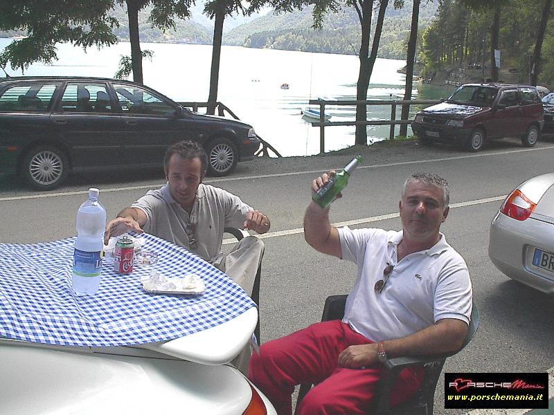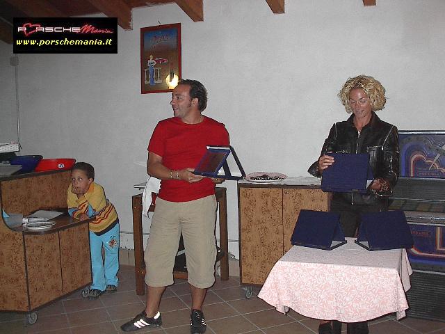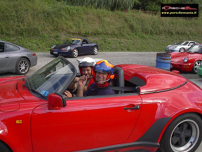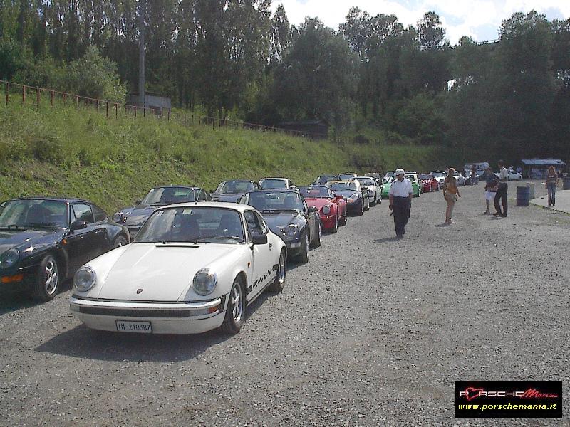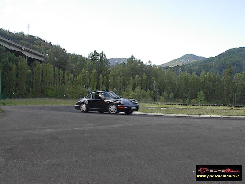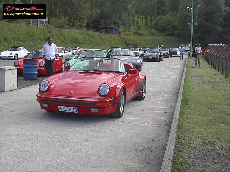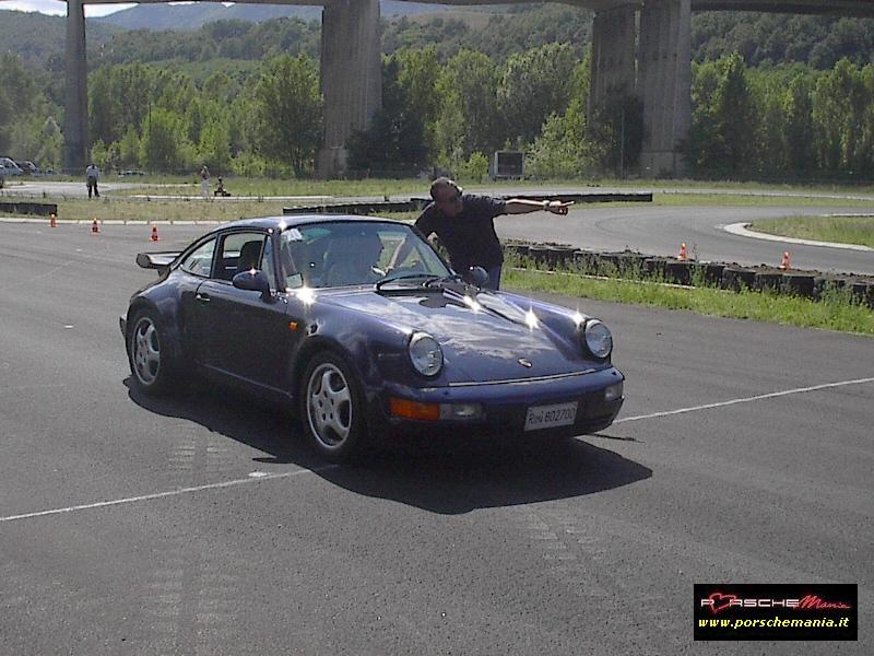 Ma andiamo con ordine: all'appuntamento nella piazza principale di Castiglione dei Pepoli si sono presentati circa 40 equipaggi con autovetture Porsche di ogni tipo ed epoca. Dopo le procedure di registrazione nella storica sala consiliare del comune di Castiglione, la carovana si muoveva alla volta dei laghi Brasimone e di Suviana dove era prevista la sosta per uno spuntino: qualcuno oramai, preso dalla febbre del raduno, si rifiutava di allontanarsi dalla propria Porsche, arrivando fino ad allestire il tavolo da pranzo direttamente sull'alettone posteriore del mezzo .......... Non senza aver apprezzato lo splendido panorama del lago di Suviana, il gruppo si rimetteva in moto per raggiungere, dopo un lungo e panoramicissimo percorso, il kartodromo di Rioveggio, dove tutto era pronto per le prove in pista. Si trattava di una tipica gara ad inseguimento (tipo 'Memorial Bettega' del Motoshow) dove due auto venivano fatte partire contemporaneamente dai lati opposti della pista e, al passaggio del secondo giro, veniva calcolato il vantaggio accumulato da una delle due. Su di un percorso non particolarmente lungo, ma tortuoso, più che la potenza del mezzo venivano esaltate le doti di conduzione e la scelta delle traiettorie attuate dal pilota. Alla fine, dopo alcuni testa a testa particolarmente entusiasmanti, ha prevalso il bolognese Piero Poli su 996 GT3, anche grazie alla lunga esperienza accumulata negli anni di partecipazione al Targa Tricolore Porsche, al secondo posto Paolo V. su 996 Turbo ed al terzo posto il fiorentino Massimo S. su Boxster S. Per quanto riguarda i premi di categoria, si sono imposti: - gruppo 1 : Davide P. su 911 T - gruppo 2 : Bruno B. su 928 S4 - gruppo 3 : Luca L. su 964 RS - gruppo 4 : Piero P. su 996 GT3 Dopo la cena e la premiazione il famoso DJ Vito Piarulli iniziava un show personale con tutti i migliori pezzi disco degli anni 70-80, e, malgrado la stanchezza accumulata durante la giornata in pista, tutti si sono lanciati nelle danze, anche grazie all'esempio di alcuni cubisti e cubiste convocati per l'occasione. Doveroso un ringraziamento a Vito ed ai suoi collaboratori della MotorProject che sono riusciti ad organizzare un bellissimo evento che, sicuramente, diventerà un'appuntamento fisso per i PorscheManiaci italiani. ![]() ![]() |