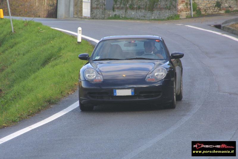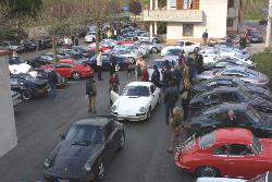 Giunta alla seconda edizione, la classica "TARTUFESTA" di chiusura della stagione raduni di PorscheMania, quest'anno ha richiamato ben 105 autovetture Porsche proveneienti da mezza Italia, basta infatti scorrere la lista degli iscritti per trovare equipaggi dal Lazio, dalla Toscana ed anche dalla Svizzera. Anche se era prevista una piccola prova di regolarità, si è trattato di un vero e proprio raduno, in cui circa 200 appassionati hanno voluto partecipare per ammirare e far ammirare modelli Porsche di ogni epoca: dalle ultimissime GT2 alle splendide 356 restaurate con cura maniacale. Proprio per cercare di gestire al meglio una simile mole di concorrenti, gli organizzatori hanno deciso di sfruttare a fondo i servizi on-line di PorscheMania: a partire dalla pubblicità dell'evento fino alla consegna del road-book per la prova di navigazione, tutto è stato gestito tramite internet con un drastico abbattimento dei costi organizzativi, permettendo così di proporre manifestazioni semplici, divertenti ed alla portata di tutti. Ma torniamo al racconto della giornata: malgrado su tutta la penisola imperversasse il maltempo, ancora una volta la fortuna ha strizzato l'occhio ai Pimaniaci che, durante il loro peregrinare tra gli splendidi paesaggi delle Langhe, hanno potuto godere di un pallido sole che ha rallegrato ulteriormente gli animi. La giornata iniziava con una prova di navigazione di circa 70 Km che portava i concorrenti, tramite un facile e preciso road-book, fino alla piazza principale di Sinio d'Alba, bel paesino arroccato sulla collina dove gli amministratori locali, memori del buon successo della scorsa edizione, avevano chiuso al traffico il centro cittadino, riservandolo al parcheggio delle vetture partecipanti. Man mano che arrivavano gli equipaggi veniva loro offerto un'aperitivo e, anche grazie al badge fornito dall'organizzazione, i partecipanti cominciavano a conoscere o a riconoscere gli amici virtuali con i quali tante volte si era discusso a distanza sul forum di PorscheMania. Tra una chiaccherata, una stretta di mano ed una discussione sull'ultima modifica apportata alla propria Porsche, si arrivava all'ora di pranzo quando con una piccola tappa di trasferimento tutta la colonna si trasferiva al ristorante Luna Una volta sistemate le auto nel comodo parcheggio riservato e custodito , tutti a tavola per gustare le prelibatezze a base di tartufo, preparate su specifica richiesta allo chef. Purtroppo l'alto numero di coperti scombussolava non poco l'organizzazione della cucina del ristorante e questo portava ad un pesante ritardo sullo svolgimento della seconda tappa di trasferimento verso Alba. Questo non spegneva certo l'entusiasmo dei Pimaniaci (così vengono chiamati gli appartenenti alla comunità virtuale di PorscheMania) che riuscivano comunque ad arrivare al luogo prescelto per la chiusura del raduno con il buio fitto. Un grande plauso a Domenico, Alex, Flavio, Simba e Marco che con grande impegno sono riusciti ad organizzare una bellissima domenica all'insegna dell'amicizia e della voglia di stare insieme, tutti accumunati da una grande passione: Porsche ! |