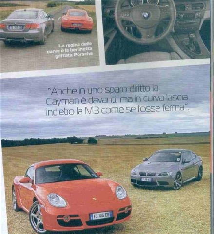 Se posso anch'io aggiungere il mio parere personale,le due auto non sono confrontabili. A me la BMW non piace esteticamante, sul motore nulla da dire, ma non l'ho mai provata. Porsche fever...forever! PMania 1596