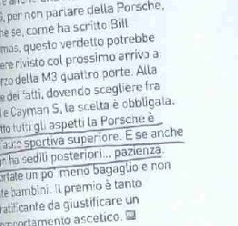 citazione da altro messaggio:poi andrò avanti con alcuni commenti... ma non vorrei creare problemi in quanto qui si dovrebbe parlare solo di Porsche non di altro!