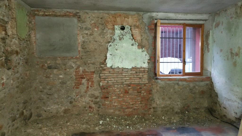 La "biocalce" è stata messa per precauzione perché il muro in fondo è sotto al livello stradale di circa 50cm. In verità di umidità non ce n'è. |