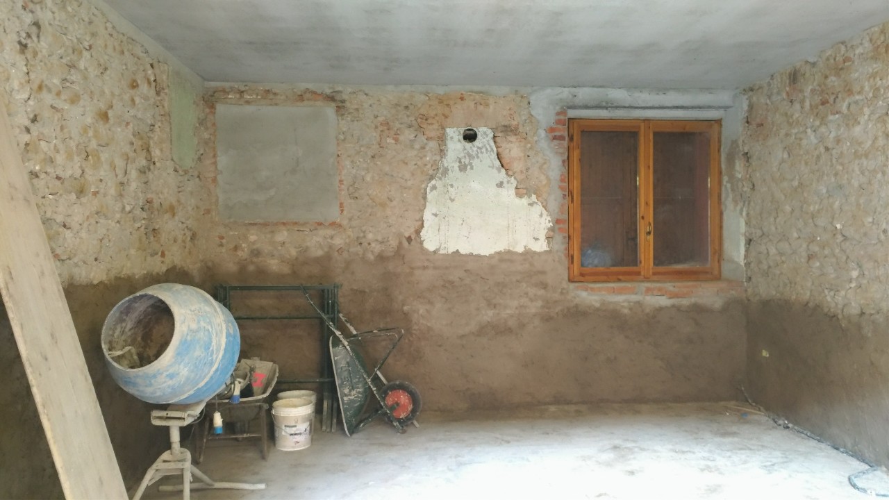 È stato finito tutto con la biocalce. Finitura muri a doc per renderlo più liscio. Ora manca solo massetto e poi pavimento...
