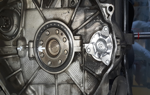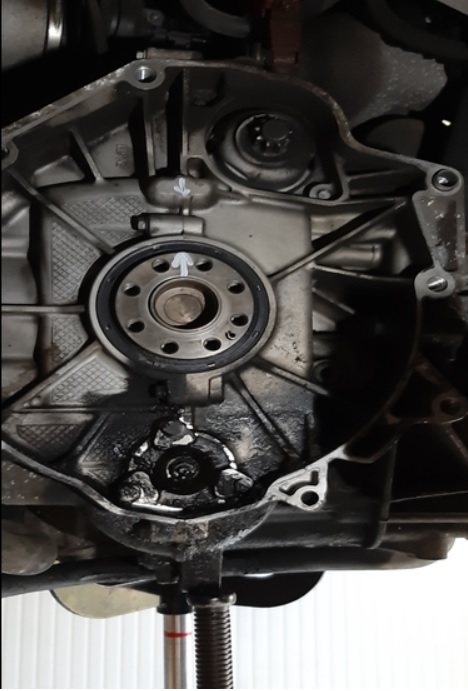 Detta così suona facile, ma vi posso garantire che è una fatica davvero notevole fare questo lavoro. I pesi in gioco non sono bassi e si deve davvero cercare di evitare errori Ma dopo un po' di insistenze questo è quello che ho trovato: leggero trafilaggio dal paraolio dell’albero motore e COPIOSO trafilaggio dall’IMS