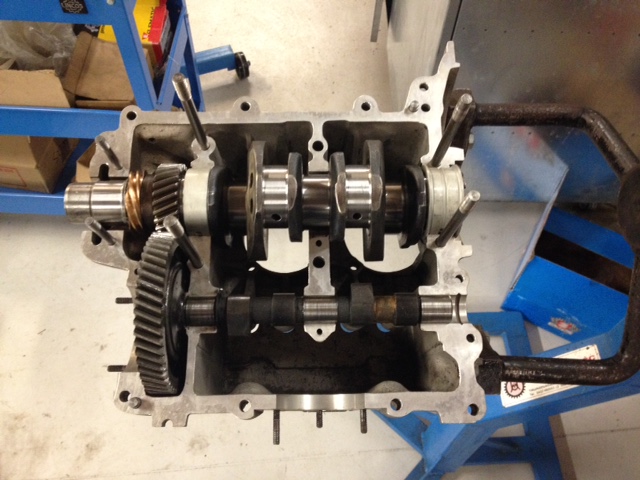 6° Puntata - verifiche dimensionali Ripristinate le misure principali del carter è necessario procedere ai montaggi che permettono di controllare dimensioni, giochi e interassi principali delle parti del motore. Gli alberi originali sono irreperibili, ma in ogni caso si tratterebbe di manufatti con i limiti intrinseci della tecnologia dell'epoca. Meglio ripiegare su un buon albero da "A", controllato ai raggi X, lavato a fondo con doppio passaggio a ultrasuoni e chimico e "stappato" per evitare che nei punti più difficili da raggiungere si annidi qualche traccia di lavorazione o qualche frammento metallico che prima o dopo finirebbero per lasciare segno del loro passaggio sulle bronzine. Per adattare le bronzine da "A" al carter VW è necessario scavare un canale nella superficie sterna della bronzina n. 4 (quella vicino alla puleggia) perché i fori di mandata olio non coincidono ed inoltre è importante orientare la bronzina n. 2 (quella centrale) con i due fori rettangolari rivolti verso il basso. Assolutamente da evitare qualsiasi modifica "old school" per aumentare la portata dell'olio: la pompa è molto più piccola di quella utilizzata nei motori successivi e quindi passaggi troppi grandi causerebbero cali di pressione disastrosi man mano che si procede verso la "periferia" del motore. Le bielle da "B" sono state selezionate, sono dello stesso lotto produttivo,, hanno lo stesso peso (+/- 0,5g), hanno lo stesso baricentro e ovviamente dadi nuovi. Sono molto più grandi (e robuste) delle originali, di conseguenza c'è parecchio lavoro di fresa per garantire nel carter lo spazio necessario alla rotazione ed un minimo di margine di sicurezza (vibrazioni, dilatazioni ecc). Nonostante le barenature il centro fori è stato rispettato e albero motore ed albero a camme lavorano alla perfezione, anche i bicchierini delle punterie hanno la giusta interferenza. Provo i gruppi termici senza i segmenti, il deck è soddisfacente, trovo solo due centesimi di differenza al PMS tra i cilindri, invertendo le combinazioni biella-pistone arrivo praticamente a zero, sono soddisfatto.