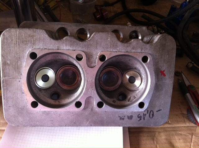 8° Puntata - E' ora di mettere la testa a posto... Ringrazio per l'apprezzamento nei commenti precedenti, ma non vorrei che qualcuno pensasse che mi faccio pubblicità. Le testate del 546 sono uniche, con quegli strani castelli del bilancieri dalla forma singolare e poco funzionale. Rettificati gli assi e costruite un paio di boccole sono in grado di funzionare bene di nuovo, gli anelli di compensazione sotto i cilindri sono dello spessore corretto e la geometria della distribuzione è perfetta (a metà corsa il bilanciere posiziona il registro al centro dello stelo della valvola in posizione perpendicolare), il sistema è un ibrido VW/Porsche e i registri non sono posizionati sopra le aste, bensì sopra le valvole. Ho provveduto a sostituire le molle di compensazione ed i bulloni di fissaggio dei castelli, anche se sono di qualità eccellente (10/9), dopo oltre 50 anni ed un infinità di cicli termici sono probabilmente "stanchi". Valvole, sedi, guide, molle e piattelli sono nuovi. Le sedi hanno i tre angoli e le valvole sono state sostituite con quelle montate negli "A", lo stelo da 10 invece che da 8 riduce leggermente il flusso dei gas, ma la maggiore durata delle cammes compensa ampiamente questa variazione, inoltre il diametro maggiore favorisce la cessione di calore attraverso la guida, realizzata a misura. Naturalmente sono stati verificati CC delle camere di scoppio e le condizioni della filettatura delle candele. Al momento del montaggio, nonostante sia stato seguita fedelmente la procedura di serraggio dei dadi e si sia proceduto con cicli in successione aumentando di volta in volta la coppia di 0,25 kgm, una testata cede e si apre una crepa tra i fori dei due dadi centrali... qualche imprecazione, poi smontaggio della testata e riparazione mediante saldatura e successiva fresatura. Nuovo montaggio e verifica manuale delle rotazioni, il motore gira in modo uniforme senza impuntature. Anche la resistenza che oppone è quella tipica della tenuta dei segmenti e delle molle valvole. Ho dovuto adattare i deflettori di raffreddamento sotto i cilindri alla forma leggermente diversa dell'alettatura e dell'interasse dei gruppi termici da 80 mm. E' il momento di regolare il giuoco assiale del volano (rettificato ed equilibrato insieme ad albero motore, spingidisco e puleggia). Il carter motore in magnesio dilata meno dei modelli successivi in alluminio, perciò mi attengo alle indicazioni del manuale originale (esemplare intonso in inglese del 1953, acquistato fortunosamente qualche anno fa!) ridurre al minimo il rischio di trafilaggi installo un paraolio in Viton con il labbro singolo. Ora il motore inizia a prendere forma.