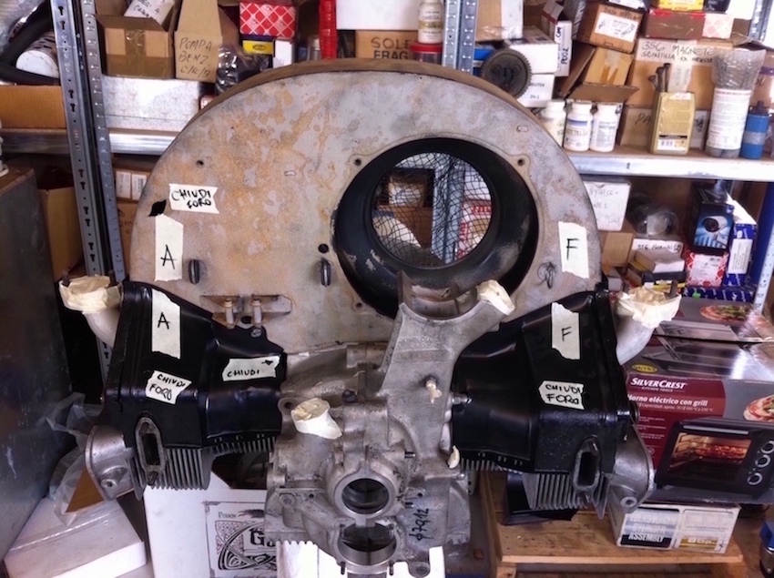 10° Puntata - Fitting Ciao Peppe, non ho mai fatto la modifica con l'inserimento delle bronzine per le cammes, anche se ci ho pensato. In realtà non ho mai trovato sedi talmente consumate da rendere l'uso impossibile, facendo i piani di contatto dei due emicarter si "mangia" qualcosa e poi con la barenatura si recupera la misura corretta. A dire il vero ho provato a far mettere un film di teflon da un artigiano che faceva padelle, il trattamento dura poco e non vale la pena. A questo punto il motore typ 546 è pronto per la prova dei lamierati, sono di motori diversi e non combaciano. La tenuta d'aria è vitale tanto per il raffreddamento diretto di radiatore, testate e cilindri, quanto per la corretta pressurizzazione del vano motore, importante anche per le prestazioni. Faccio un lavoro certosino di adattamento e modifica, adatto anche un paio di deflettori sottocilindro, faccio lavaggio chimico e sabbiatura e poi vado a farli verniciare. Una volta rimontati il risultato è soddisfacente.