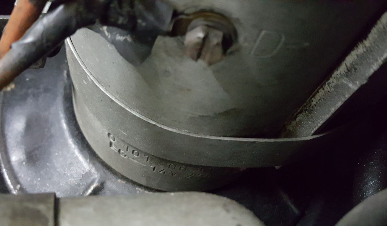 Grazie per le foto. Il codice dovrebbe essere: 0 101 206 113 (potrebbe essere 3 o altro numero) EG<- 14V 25A (ci sono altri due numeri dopo la corrente ma non importa) Importante la freccia dopo la G che indica il senso di rotazione. Carina la dinamo con il collegamento a massa supplementare (D-) Saluti, Fede912. Le Porsche sono tutte belle.