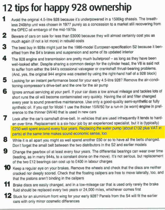Marco, per quanto riguarda la pompa acqua Rosepassion non chiede il ritorno di quella vecchia e quella fornita, confermo, era di buona qualita'; il tutto a mno del prezzo che Porsche Ricambi quotava (parliamo di tre anni fa...) per una revisionata con ritorno di quella usata. [!] Questo utente ha superato il limite di msg concessi ai NON soci. Consigliamo di iscriversi o rinnovare la quota del Pimania Club!