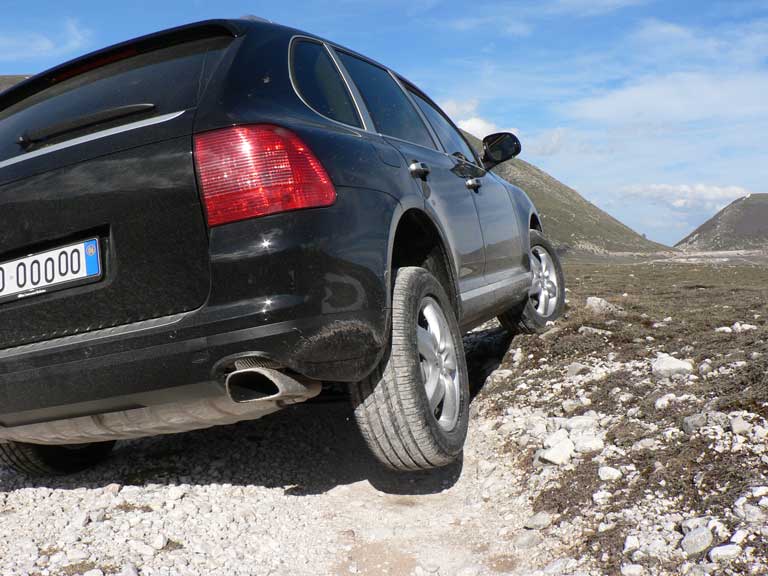Noncurante di rami, fango e sassi ho provato a fare un'uscitina fuori dall'asfalto: sono rimasto piacevolmente sorperso quando, non resistendo alla tentazione, ho provato a testate la rigidità torsionale della scocca alzando una ruota (con quattro persone a bordo!) Beh, avevo fatto la stessa prova col mio fuoristrada (uno dei più quotati, fra l'altro, per le sue capacità fuoristradistiche) ed avevo notato molto scricchiolii qua e la'. Beh, il cayenone non ha fatto un lamento, e la sua scocca ha dimostrato una rigidità esemplare... a questo punto penso che se non fosse per i pneumatici e la scarsa protezione del sottoscocca la porsche portebbe dare del filo da torcere ai vari pajero, discovery, wrangler, ecc... ovviamente con le coperture adatte e cerchi non maggiori dei 18'! saluti infangati wp