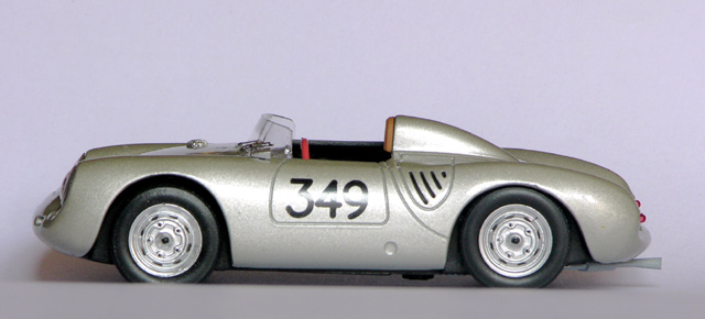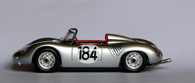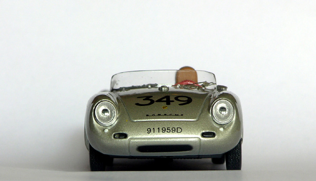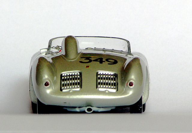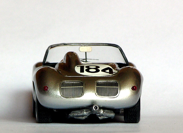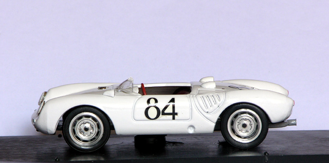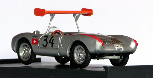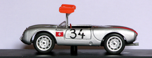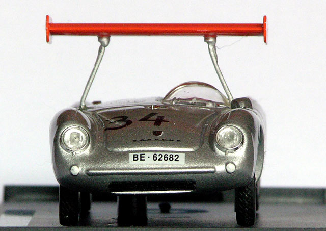 Questa è la Porsche 550 RS Spyder di Michael May, che con il suo vistoso maxi alettone nel 1956 in prova al Nurburgring andò più forte delle Porsche ufficiali...infatti, vedi caso, dovette prendere il via della gara senza il marchingegno...!