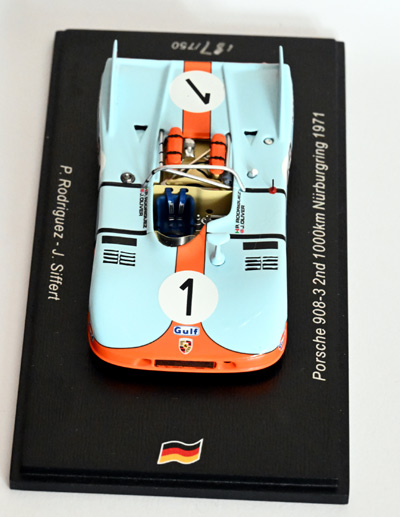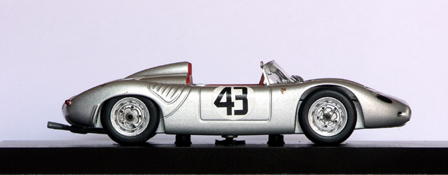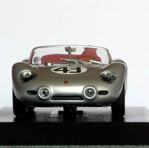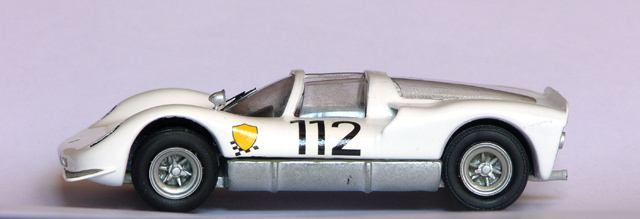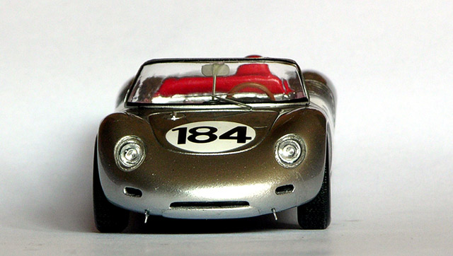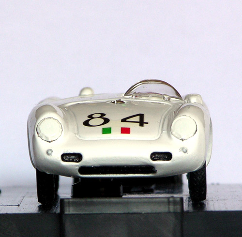 Continua da qui : http://www.porschemania.it/discus/messages/245845/840884.html?1585244010 E' lei, la Porsche 904/8 Bergspyder denominata Kangaroo, con motore a otto cilindri; non proprio fra le vetture di Stoccarda più belle, ma devo dire che a forza di vederla...mi ci sono affezionato. E sì, perchè questo modellino nasce da un kit, è un po' che non ne facevo! Ma soprattutto ci ho messo molto tempo a farlo, non certo per la complessità della scatola di montaggio, ma per il fatto che la verniciatura, fatta come sempre con una bomboletta, non ne voleva sapere di asciugarsi, probabilmente a causa del tipo di resina di cui è fatto il modellino. Ancora ora è attaccaticcia, ed ho dovuto maneggiarla con grande attenzione per evitare di lasciarci sopra...le mie impronte digitali ! Solo tre decals, nessun sponsor e via andare ! Parliamo del 1965, di una gara secondaria al Norisring, con annessa vittoria, ed al volante Gerard Mitter. Appena la trovo dovrò fare pure la sorellina seconda alla Targa Florio del 1965, ma con particolari differenti. Il modellino è della Vroom.