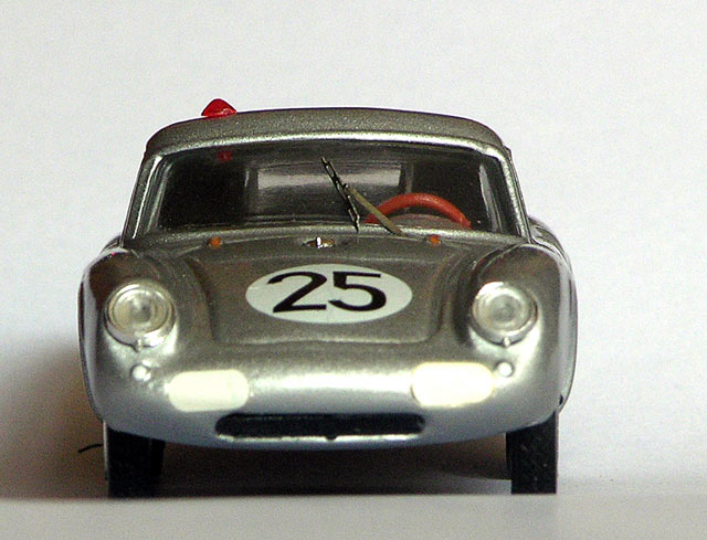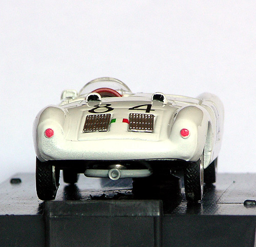 Vettura 5a a Le Mans 1956 e prima di classe. I piloti erano Von Trips e Von Frankenberg. Modello Brumm non malvagio, anche qui ho sostituito il tergi con uno semi-costruito da me. Franco. Chiave a sinistra,contagiri al centro e via andare...! Sempre in testa a tutti... ma con le mutande di latta!!!