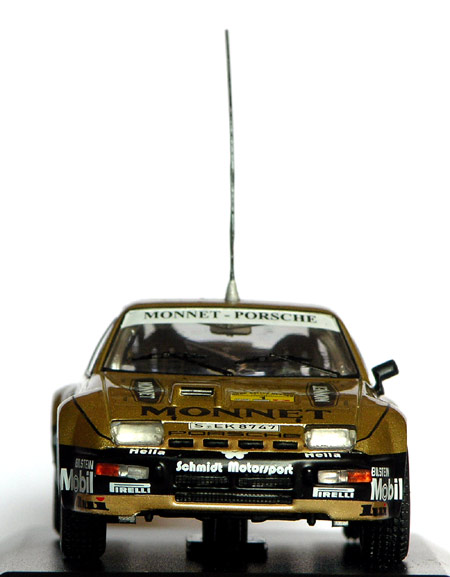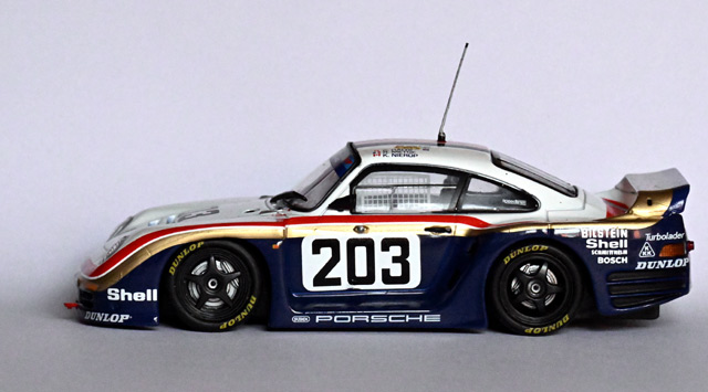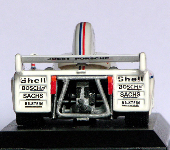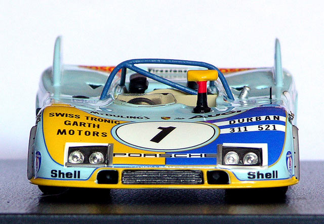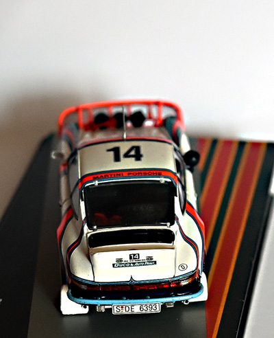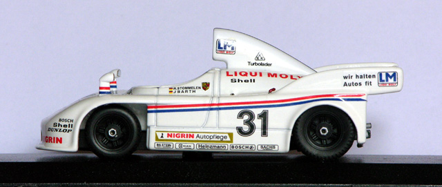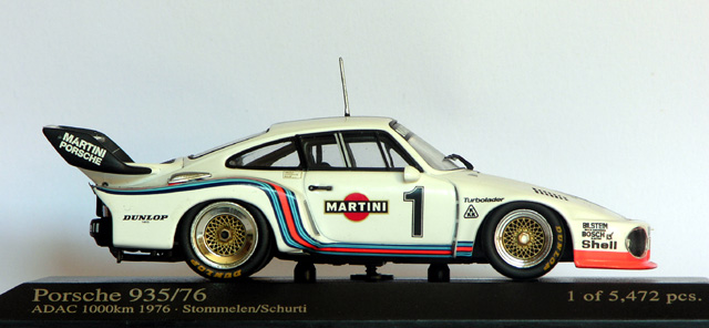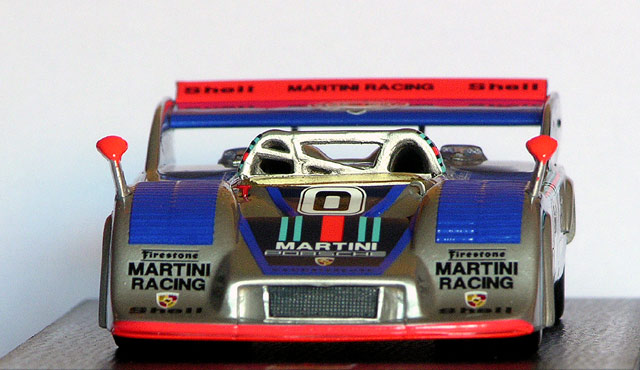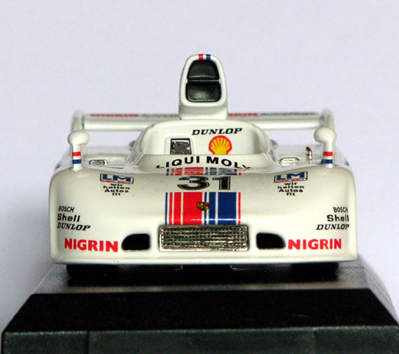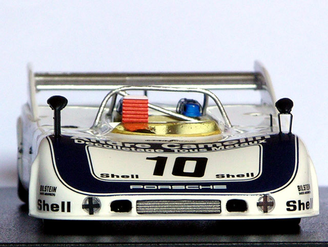 Vettura interessante in quanto aveva il muso del primo tipo ( quella vittoriosa al Mugello, e che vidi di persona), mentre la parte posteriore ha la forma degli ultimi tipi del 1976. Mi riprometto di cambiare l'antenna in quanto troppo grossa, ed in foto si nota anche di più che non dal vivo. Stessa cosa dovrò fare per la 935 vittoriosa a Digione nello stesso anno, e che ha il medesimo problema. Modellino Minichamps al quale ho aggiunto i due piccoli flaps neri in coda, oltre a fare le luci di retromarcia. Franco. Chiave a sinistra,contagiri al centro e via andare...! Sempre in testa a tutti... ma con le mutande di latta!!!