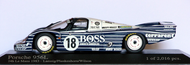 Ecco l'elegantissima Porsche 956 del team Obermaier, con livrea Boss, classificatasi 7a alla 24 Ore di le Mans del 1983, condotta da Laessig-Plankenhorn-Wilson :