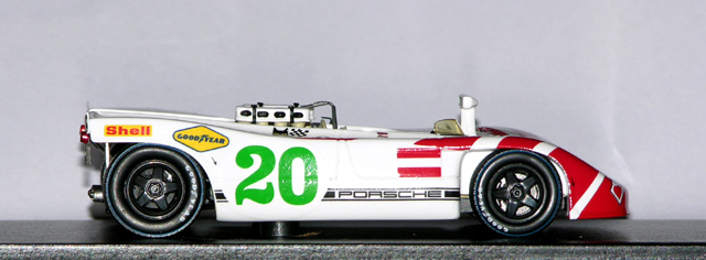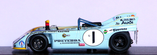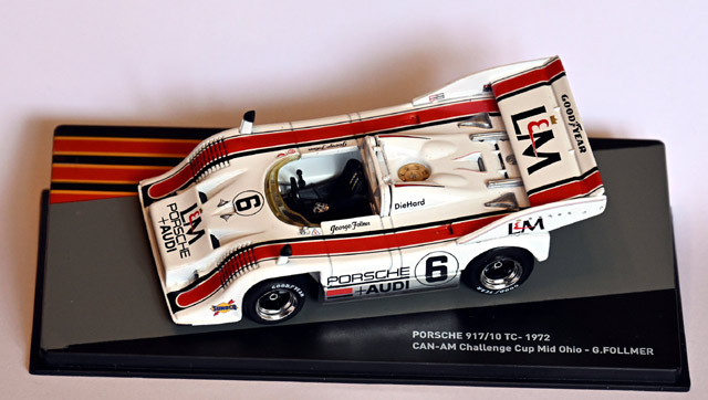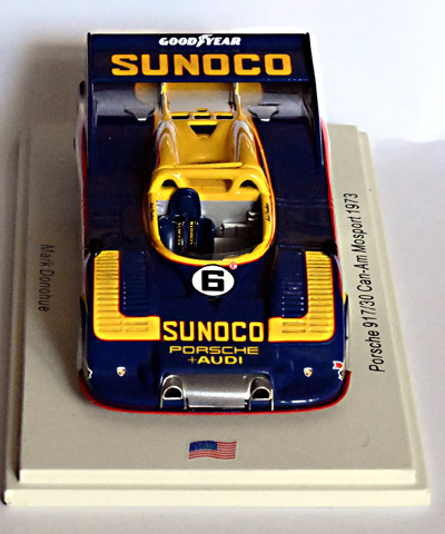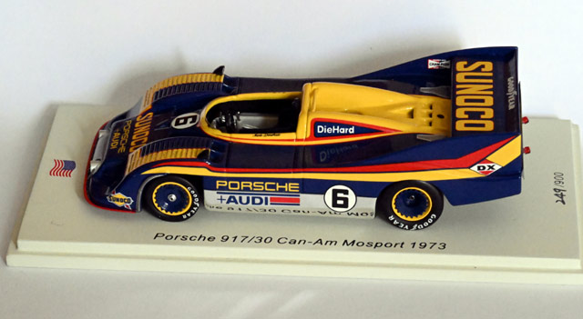 Questa non ha bisogno di presentazioni...è la Porsche da competizione più potente mai costruita, e pure l'auto da corsa più potente di sempre, almeno in configurazione gara. Stiamo parando di Sua Maestà la 917-30 condotta da Donuhue, e campione Can-Am 1973. In particolare questo modellino riproduce l'auto che si piazzò settima nella gara di Mosport di quell'anno
