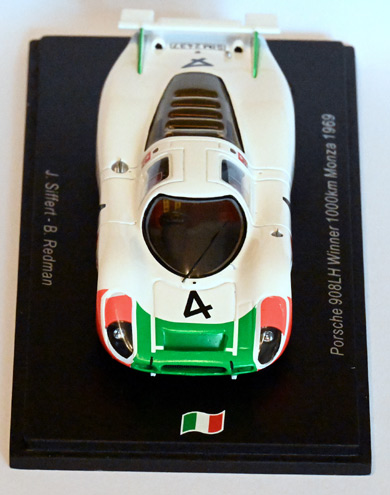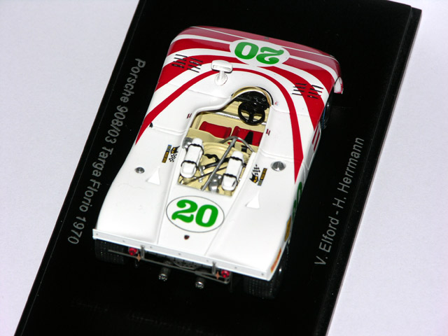 Dopo una lunga pausa, ecco un modello che va ad aggiungersi alla mia collezione, o "mini-museo": si tratta della Porsche 908/03 che condotta da Elford-Herrmann si ritirò nella Targa Florio del 1970; l'ho presa per la particolare livrea...tanto a vincere fu un'altra 908/03 !!!
