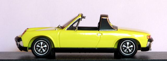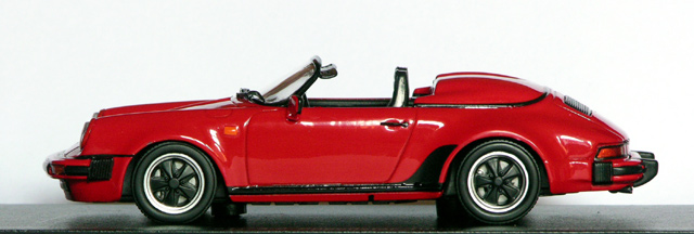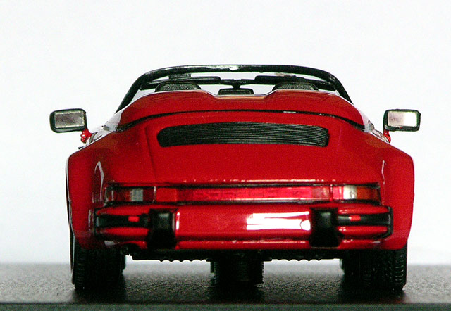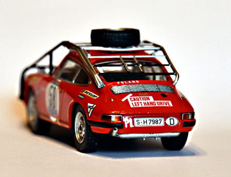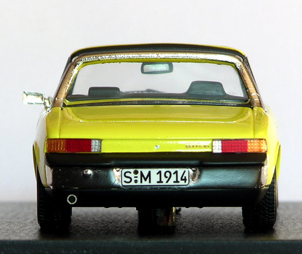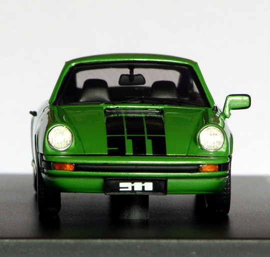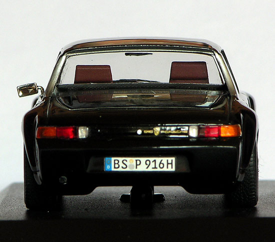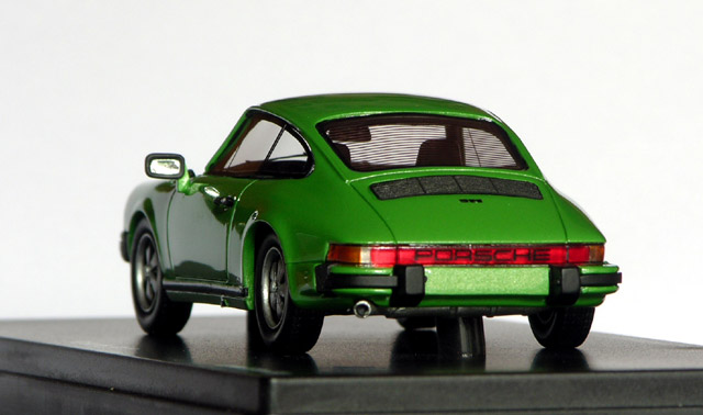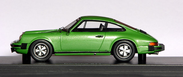 Ed ora una 911 con svariati optionals; si tratta del modello del 1975, con scritta sul cofano, cornici finestrini nere e specchietto retrovisore in tinta, tutte cose che ho visto essere reali su un depliant dell'epoca. Eccola :