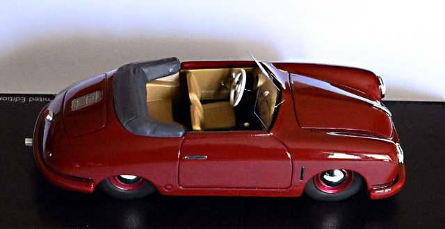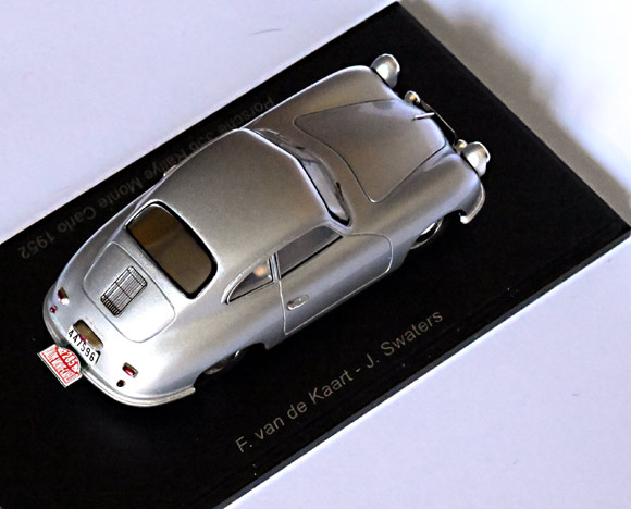 Questa non è certo la più bella delle Porsche 356, ma sicuramente è la più particolare, a causa dei fari anteriori modificati e della targa del Rally di Montecarlo 1952 posteriore montata in maniera orizzontale...
