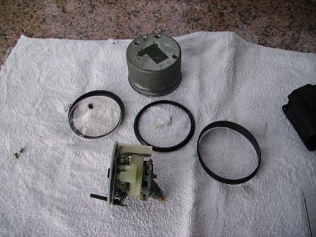 allora tony giri lo stumento e con un cacciavite a lama grande allenti la ghiera che è montata a pressione facendo leva tra il bordino e lo strumento. ti consiglio di cominciare dalla parte bassa e dopo pochi cm vedrai che si allenta tutta. una volta tolta la ghiera il vetro esce solo. togli la cornice interna che è montata a pressione e giri lo strumento. a questo punto basta togliere le due viti sul retro e con molta attenzione sfili tutto il blocco. |