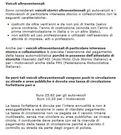"ragassi" ... ma ancora qui stiamo ? E' dal 2015 che non cambia più niente. Solo i lombardi, i romagnoli, gli emiliani ed i trentini possono non pagare più il bollo per le ventennali ( e forse qualche riduzione qua e là ancora tra i soliti privilegiati ... quest'anno anche dalle nevicate ). Tutti gli altri lo pagano per le ventennali. E tu C.Pietro non avrai pagato in ricevitoria il bollo ridotto ma i trenta euro ( o giu di lì ) di tassa di circolazione... da pagare se circoli e non sei più - come molti fanno - iscritto all'ASI e al club federato ASI ( come fanno in molti che si iscrivono solo il primo anno per ottenere il CRS ... anche da un altro Registro, non solo dall'ASI ). Aggiungo che lo status di veicolo d'interesse storico e collezionistico ( il CRS ) va fatto registrare ... dichiarandolo in Regione là dove serve per l'esenzione oppure all'ACI o alla Motorizzazione. Non conosco Registro che - come una volta faceva l'ASI - oggi faccia questa segnalazione ... il certificato viene rilasciato al proprietario della vettura e segue la vettura anche in caso di vendita... questo sì, bisogna dirlo per correttezza. |