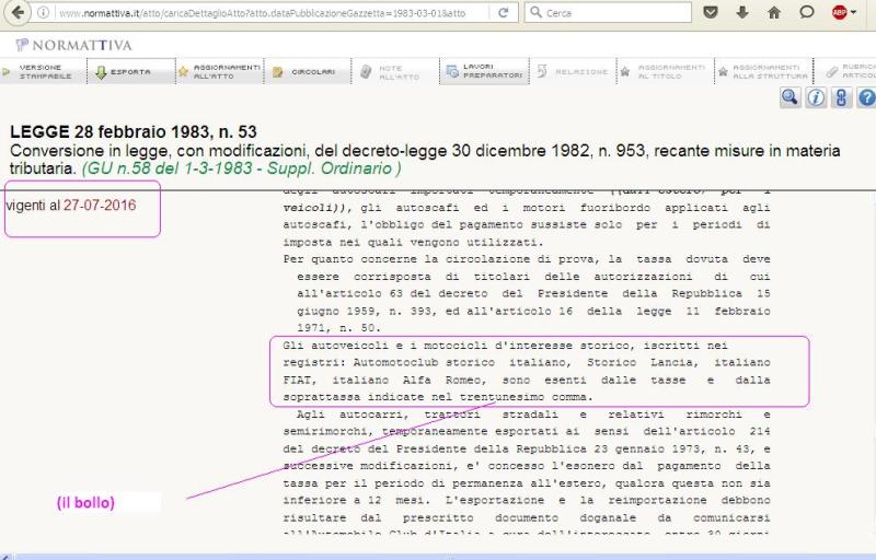 Ing ... hai ragione. Sembra - se ho capito - che lascino spazio alla circolazione delle certificate solo al sabato e festivi ... bla bla bla . Non potevano scrivere come tutti i normali cristiani sabato, domenica e festivi infrasettimanali ... hanno sporcato 10 fogli non guastavano due parole in più per essere più precisi. Riporto : "veicoli di interesse storico e collezionistico di cui all’art. 60 del codice della strada iscritti agli appositi registri, nelle giornate di sabato e festive non interessate dalle limitazioni temporanee o per la partecipazione a manifestazioni indette dalle associazioni o a cerimonie funebri, religiose, civili non ordinarie; " ... o mia capì ... posso andare con la storica al funerale ? Certo che leggere come scrivono questi documenti ... mi viene la nausea come quando siedo sul sedile di destra. Per la domanda del sciur Mingoni non ho una risposta. Ricordo di aver letto da qualche parte che in Lombardia si diceva "in regola con la quota annuale d'iscrizione" ma non ho proprio più voglia di andare a cercare... almeno questa sera ( mi basta già aver letto - quasi tutto - quello piemontese di prima ). |
