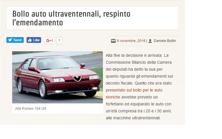 Magari!! Ovviamente per dare forza alla cosa nella foto che accompagna l'articolo non hanno messo un'auto storica ma un'auto vecchia e mal tenuta! |
