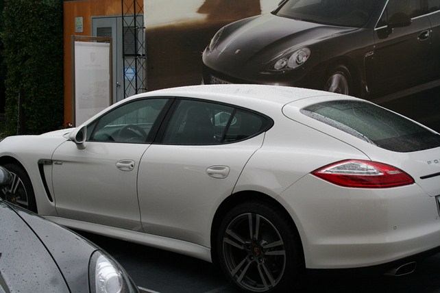 Oggi siamo andati (io e Gas) a provare le Panamera e, sotto un acquazzone costante, io ho provato la 4S mentre Gas ha provato la "ibrida". Ovviamente gli interni, da berlinona di gran lusso, sono spettacolosi e l'elettronica coadiuva ogni singola necessità del guidatore (sconvolgente - per me - il sedile che automaticamente va indietro all'apertura della portiera per consentire una più comoda discesa del guidatore) il motore della 4S è docile come un agnellino ma, pestando sull'acceleratore, scatena tutti i suoi 400 cv , i freni sono ben modulabili e all'altezza del peso della vettura. Vista la pioggia intensa non me la sono sentita di forzare la velocità nel misto ma sembra incollata al terreno, il cambio sequenziale al volante da sempre la sensazione di lentezza nel salire di marcia, probabilmente però è una mia personale sensazione dettata dalla inesperienza su questo tipo di cambio. Purtroppo devo confermare che la linea posteriore sia diretta che di 3/4 non è di mio gradimento e conferisce alla Panamera un aspetto non consono alla linea Porsche....AMMA