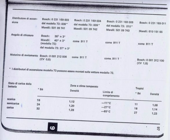 Qui' leggiamo che il my 73 ha lo spinterogeno Marelli ed il my 72 lo spinterogeno Bosch, leggiamo anche che "I DISTRIBUTORI DI ACCENSIONE MODELLO 73 POSSONO ESSERE MONTATI SULLE VETTURE MODELLO 72" cosa che fa ritenere i particolari compatibili e quindi potenze identiche, se pero' andiamo a leggere gli angoli di chiusura troviamo che il bosch (my72)è a 38°.Ora viene il bello, il Marelli va a 37° sul my73 ma incredibilmente il Marelli se montato sul my72 va a 40°.PERCHé? Anche questa non mi sembra un'opinione.