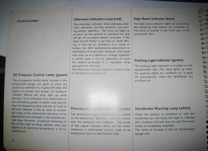 Ok Alex, allora sarà così dato che sapevo che le spie più o meno erano quelle ma non la successione (tra l'altro io che le prebumpers non le ho mai avute e non le conosco per nulla cerco di capire e documentarmi ma come è possibile che il proprietario di una vettura non sappia neanche bene a cosa corrispondono le spie??????). Tra l'altro da sempre è convenzione che la spia verde sia relativa ai fari e questo è quanto tu mi dici e mi torna. Allora direi niente di più facile che invertendo i poli ci sia stato qualche corto o sulla dinamo che non carica più o su un fusibile. 911.... air cooled only!!!