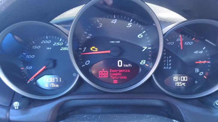 Ciao, poco fa sono uscito con la mia Boxster 987 2.7 del 2008 acquistata da un privato lo scorso Marzo. Dopo poche curve il cambio automatico Tiptronic ha smesso di funzionare. Panico. Il precedente proprietario ha cambiato l'olio del cambio nel 2019 (appena la comprò lui e da allora ci ha fatto 3.000 km). Mi sono accostato su una piazzola e quando ho provato ad inserire la retromarcia la macchina si è spenta. Dopo 5 minuti l'ho riaccesa e sono riuscito a tornare a casa in prima. Ho fatto 2 foto al monitor. Qualcuno mi può illustrare i possibili scenari ?