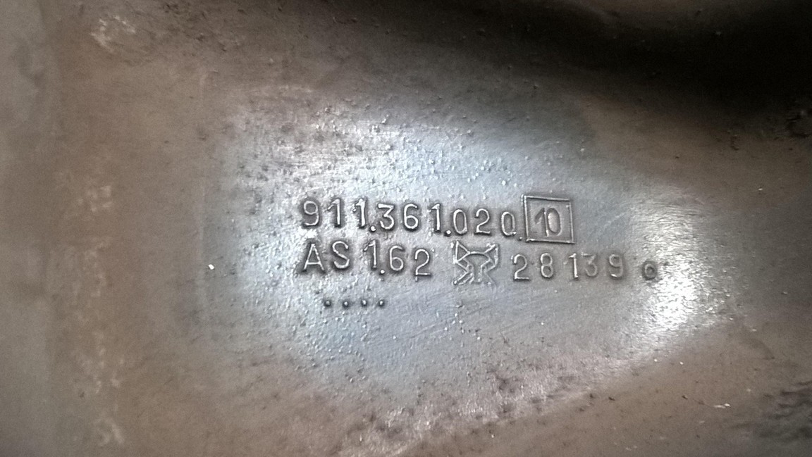 Buongiorno a tutti, posseggo e guido auto d'epoca da quasi trenta anni, ma sono nuovo del mondo Porsche e delle sue specificità, per cui vi chiedo un parere. Ho una 912 del '66 che ho già trovato con i cerchi Fuchs messi su dal vecchio proprietario; vorrei pero'ri-dotare la macchina dei suoi cerchi forati originali, che se pur meno prestigiosi o desiderabili, trovo decisamente piu' consoni al modello/anno sia per motivi estetici che storici. Premesso che mi interessa poco avere dei cerchi storici con impressa la data giusta per la mia macchina, ma bado molto di piu' alla giusta qualità dei cerche soprattutto quando mi trovo in corsia di sorpasso in autostrada, mi condigliate: 1. di comprare 5 cerchi nuovi da fornitori affidabili, o cercarne di originali d'epoca (di qualunque data, ripeto non ci tengo) ? 2. quanto pensate possano valere i miei 5 fuchs 6Jx15" che, pur non restaurati/lucidati ecc. sono comunque in ottime condizioni? 3. Cosa indica la sigla numerica e i quattro pallini a rilievo nella fusione dei cerchi (vedi foto)? Grazie a quanti vorranno illuminarmi...