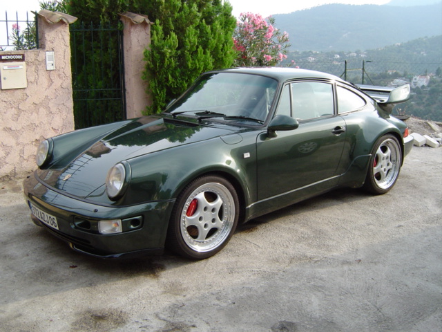 dal mio DB segreto, macchina in vendita in franZa un secolo fa, lasciando perdere l' odio personale per le macchine verdi direi che sul 964 turbo non ciazzecca una ceppa, anche se guardi sta foto e magari dici che bella! ma il bello è la macchina non il colore da diversamente etero o da auto inglese degli anni che furono