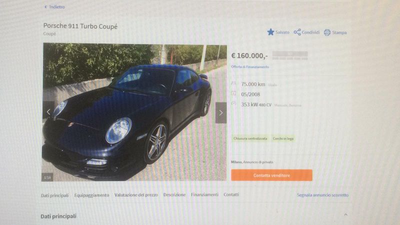 Mi ha confidato Ivan che vende Morticia soltanto per acquistare una 997 Turbo manuale nera particolarmente bella e costosa in vendita su AutoScout a Milano