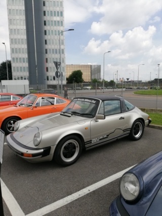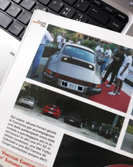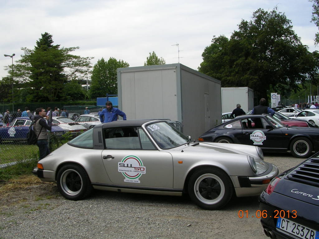 Vista la fatica fatta - nella mia immensa "confusione" - a ritrovare qualche foto, eccovi la mia "padella". Qui sotto il giorno che la ritiro - nell'aprile 2013 - dal garage del dentista milanese che l'aveva presa il 19.4.1982 dalla Concessionaria F. Pirola & Figli Srl di Desio. Da Milano a Cernobbio col riscaldamento a palla e i finestrini abbassati, non avevo idea di come funzionasse il sistema automatico di riscaldamento ... ed ero in palla un pò anch'io. Qui nel giugno a Monza per i 50° della 911. Ho ancora le gomme, da fattura acquisto, del 1993 e con circa 3.000 Km percorsi, dure come il cemento ma nuovissime. Ha anche i cerchi posteriori leggermente più larghi e "di concorrenza", che il Sciur Paolo M. mi ha "sgamato" appena si è avvicinato la prima volta alla vettura per complimentarsi per l'acquisto ( anche perché 4 anni prima mi ero lasciato sfuggire una SC Coupè rossa, sempre del 1982 e poco chilometrata - con seconda targa CT - a metà prezzo di quello che ho pagato la "pentola" ). Cerchi posteriori trovati con mumerazione giusta e gomme ovviamente cambiate subito dopo Monza. Qui al Concorso d'Eleganza al CP MIlano nel giugno 2018 per il 70° di Porsche.