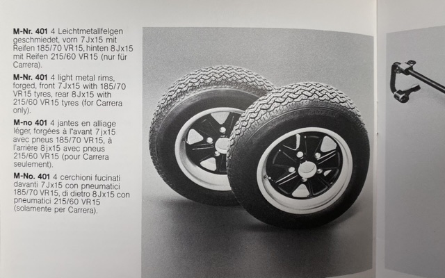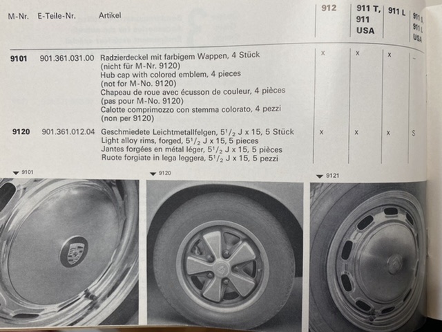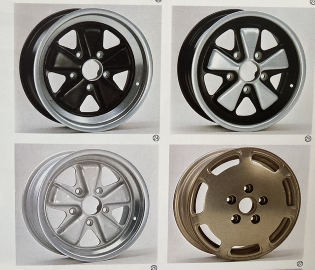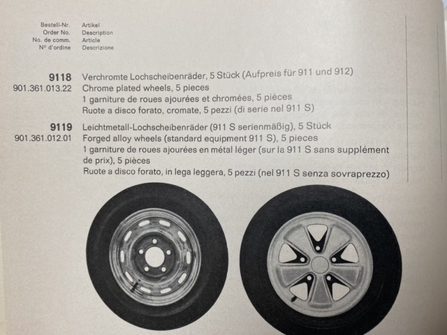 Mauro, il mondo dei Fuchs è molto complesso. Escludiamo le varianti Racing o Exclusive e concentriamoci solo su quelli di serie. Premessa: i 26 sono rarissimi sulle 911. Riprendono la colorazione monocromatica dei 4 1/2 del 67, i primi fuchs apparsi, ma senza la parte vicino al mozzo nera come nel 67 e protetti con robusta dose di trasparente (cosa che non c’era sulla PB, che sono solo anodizzati). Li ho visti solo su alcune 3.2 molto particolari provenienti da collezioni di altissimo livello. Per evitare di dire cose per “sentito dire”, la cosa migliore è allegare una selezione di fonti originali. Se hai domande dopo queste foto, chiedi pure. Catalogo 67: