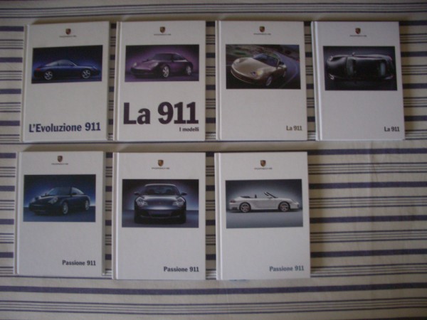 ho trovato alcune foto della mia collezione. questi sono i depliant carrera 996 MkI e MkII Manca solo quello "Evoluzione 911" uguale a quello in alto a sinistra ma con diverso codice che ho anche ma queste foto sono un pò vecchie. La collezione 996 carrera dovrebbe essere completa cosi