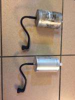 Avendo alzato la macchina per il lavoro sui radiatori ed essendo passati due anni dall'ultimo tagliando, ho deciso di cambiare l'olio. Ho inoltre prelevato un campione dello stesso per analizzarlo, stessa cosa l'avevo fatta dopo un migliaio di km dalla sostituzione ed inoltre avevo analizzato un campione di olio prelevato dal flacone prima di metterlo nel motore, per avere un riferimento "zero" Nella foto da sx: campione di olio attuale con 5500km, campione di olio con 1300 km, campione olio nuovo da flacone Olio Mobil1 5W - 50