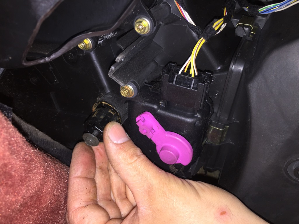 Un altro perno si trova in abitacolo, dalla parte del passeggero, si accede togliendo la paratia nera sotto la plancia ed è visibile in quanto è collegato allo snodo del motorino per l’azionamento.