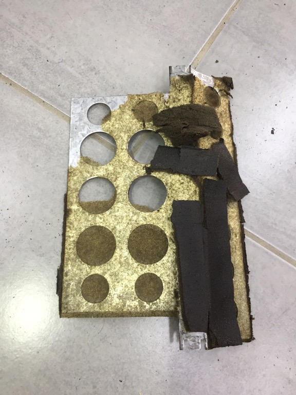 Guardando dentro si vede la paratia con la spugna che cade a pezzi..