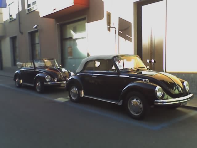 eccomi bart!! presento anche io la mia piccola.... dunque, Maggiolone 1303 cabrio,anno 1975,1200cc 34 cv, aspirazione singola,carrozzato Karmann,totalmente originale in ogni suo punto,capote panna carrozzeria nera,interni terra di siena,full optional,targhe nere,fanali antinebbia Lucas modello a bulbo intero! ecco qualche fotina: