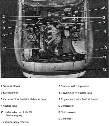 La valvola di mandata liquido riscaldamento dal vano motore è, a motore spento, normalmente aperta, ossia il liquido caldo raggiunge l'abitacolo. Fra le due opzioni possibili, Porsche ha preferito il "morire di caldo" rispetto all'opposto :-) La valvola pneumatica ha bisogno di "vuoto" per funzionare, e quindi impiega alcuni secondi dall'avviamento del motore, visto che la "depressione" (vuoto) è prodotto nei condotti di aspirazione. Quindi il problema estivo dell'arrivo di acqua calda alla riaccensione non è eliminabile. Consiglio comunque di verificare che non ci sia qualche clip di plastica rotta sotto la plancia, è un problema comune nelle 944/968. Se le clip sono rotte, le paratie di miscelatura e chiusura dell'aria calda non funzionano a dovere, ed il problema del riscaldamento indesiderato dell'abitacolo è più grave. Ciao Ugo |