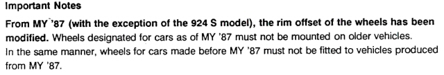La tabella era stata rinvenuta tempo fa su un sito francese, ecco il link: http://home.tele2.it/demoz/pdf/jantes.pdf il documento non è ufficiale, quindi va preso con beneficio di inventario. Invece, da documenti ufficiali, risulta dapprima il cambio di ET con il MY 87