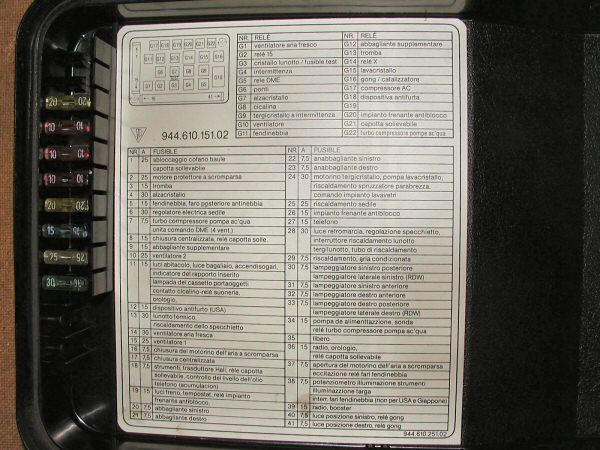 Sul retro del coperchio fusibili, non hai lo schema? Ti allego il mio, non farci affidamento al 100%, ci possono essere differenze.... Per il manuale d'uso, mandami l'indirizzo di una tua mail che regga circa 15 Mb, in settimana vedrò di fare qualcosa. Ciao