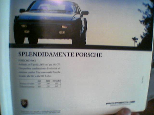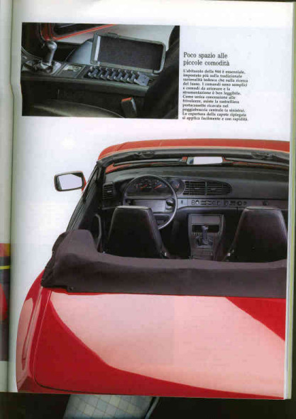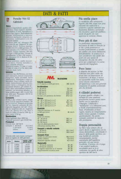 Salve ragazzi, oggi dall'elettrauto (sto montando un cd becker sulla mia bimba) c'era una belissima 944 cabrio (non chiedetimi anno xchè non sono esperto del modello) argento con interni viola! volevo fotografarla ma avevo solo telefonino. Guardando il cruscotto (che mi piace molto molto!!) mi è venuto un flash: dovrei aver un bel servizio sulla macchina in questione su un AM dei primi anni 90 (ho la collezione completa), in questi giorni lo andrò a ripescare e se avrò richieste faro' scansione! Ciao!