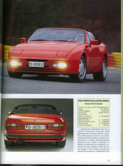 ahahh! eccomi già qua! l'articolo completo l'ho preparato in un unico e corposo file pdf da 26mb! Quindi lo posto in privato su richiesta, non vorrei intasare l'area sulla 944 con un servizio o.t. Ciao!ora torno al lavoro (quello vero)!!! E mi raccomando: prudenza, sempre! e fari accesi anche di giorno! |