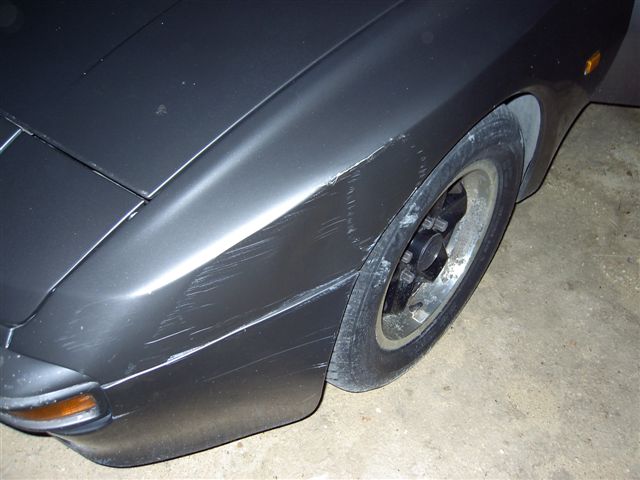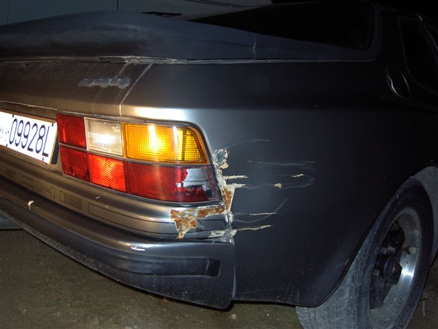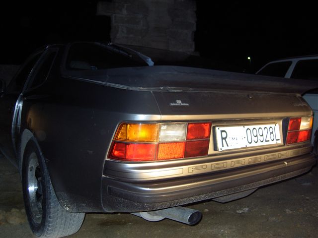 Ho contattato il tizio della 944 di Taranto mi ha risposto che avrei potuto visionarla in un qualunque momento in quanto era in una officina dove era stata portata a dicembre per riparazioni e mai ritirata. Verso le 18:30 di questa sera sono arrivato alla officina indicata dal proprietario armato di macchina fotografica e di un elenco di prove e verifiche da effettuare. Il meccanico mi porta a 300m dall'officina in un recinto(senza tetto) desolato e privo di luce. inutile dire che l'auto non va in moto perchè ferma da diversi mesi e quindi con la batteria a terra e di conseguenza non ho potuto verificare nulla di impianto elettrico e di meccanica, però mi hanno assicurato che se ritorno di mattina me la fanno sentire in moto (magari ci vado sabato se ancora vi interesserà). Ecco intanto come si presenta esteticamente la 944 di Taranto.