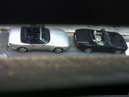 Ciao Ragazzi, ho tirato fuori le 2 cabrio per mostrarle qui in foto, ma... purtroppo ho combinato una danno, in pratica nella mia non funzionava il tergicristallo, quindi, mi appresto a smontarlo, e per sbaglio urto il parabrezza che si spacca... non è giusto, che sfortuna!!! Cmq vi allego le foto, la mia è quella color grigio con cerchi CUP 17", invece quella nera con cerchi 18" è del mio amico Raul che saluto con un forte abbraccio. P.S.:Scusate l'ambientazione