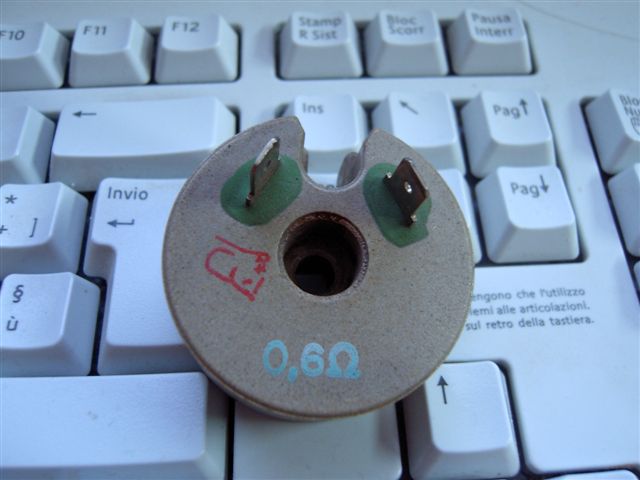 E' una resistenza a filo, da 600 mOhm nominali; non usa i codici colore standard, quindi non è nota la tolleranza, che però sarà ampia. Non è chiaro, però, se il componente comprenda solo la resistenza (come uno dei vecchi reostati non elettronici, per intenderci), o se associ un sensore sensibile a qualche grandezza, per esempio un bimetallo che apre/chiude il circuito ad una certa temperatura, cambiando quindi i valori di tensione in un qualche circuito. |