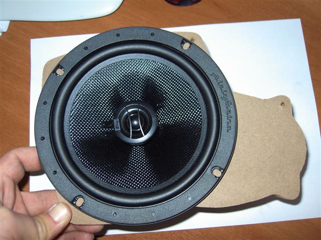 ho pensato di sostituirle con delle casse di migliore qualità e maggiori prestazioni . Non ho trovato nulla però che si adattasse alla sede originale. La soluzione era quella di modificare il lamierino originale, però non volendo rovinare nulla di ciò che è originale ho optato per la solita modifica reversibile utilizzando un supporto senza modificare l'estetica dell'auto. Armato di trapano seghetto alternativo matita ed un pannello di mdf ho tagliato la lamiera della carrozzeria..... e dai scherzo, piuttosto mi taglio le mani dicevo...ho creato un piccolo supporto con la sagoma dell'originale(è solo un lavoro di pazienza, facilissimo da realizzare):